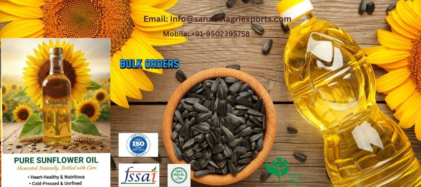 Sanabel Agri Exports supplies premium-quality edible oils sourced from certified producers. Our oils are available in bulk export packaging, ensuring purity, freshness, and compliance with global standards.